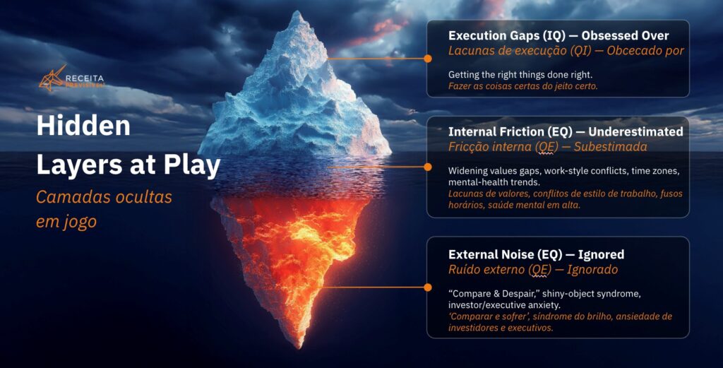 Comparação infinita, ansiedade, medo de errar, perfeccionismo e correria sem pausa intoxicam qualquer operação. Cultura vira vantagem competitiva quando ajuda o time a usar melhor seus relacionamentos internos e com clientes, trocando medo por sinceridade e confiança; as empresas que mais vencem na implementação são as que tiram o time do modo “desespero e comparação” e devolvem clareza, suporte e confiança: amabilidade com as pessoas e firmeza com os processos.