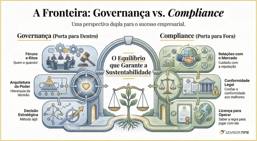 Já falei aqui sobre Governança. Aquele assunto de como você deve organizar a casa, de quem decide o quê, e com que ritmo. É basicamente o Controle da sua operação, da sua estratégia, de quem manda e como manda. Agora, tem um outro termo que aparece muito, e que muita gente confunde, mas que é muito importante: o Compliance.
