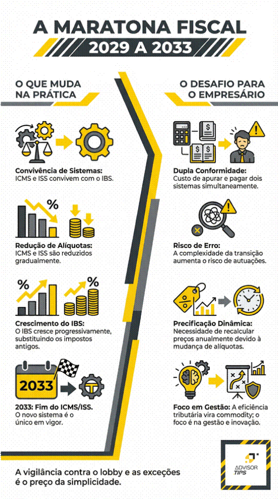 Depois de 2033, o jogo muda. A competição não será mais sobre quem tem o melhor malabarista fiscal. Será sobre quem tem o melhor produto, o melhor serviço, a melhor logística. A eficiência tributária será uma commodity.